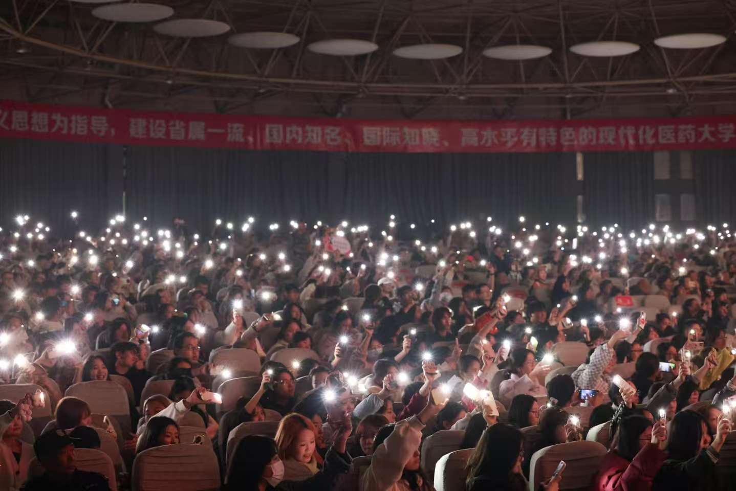 课堂还融入了舞蹈、音诗画、歌曲串烧等多元形式,生动演绎了六十年的风雨兼程与代代人的初心不改。当那些亲历并铸就六十年辉煌的身影登上舞台时,全场师生无不动容。师生们不约而同打开手机灯光致敬先辈精神,点点灯光汇聚成璀璨星河,照亮了现场,更照亮了传承之路。“这里有一群白衣天使翱翔,人世间汇聚那医学荣光……”课堂最后,全体师生齐声高唱《betway备用网站校歌》。激昂的歌声既是对学校六十年荣光与担当的崇高致敬,更是全体湖医药人以奋进昂扬之姿,迈向新征程的豪迈宣言。