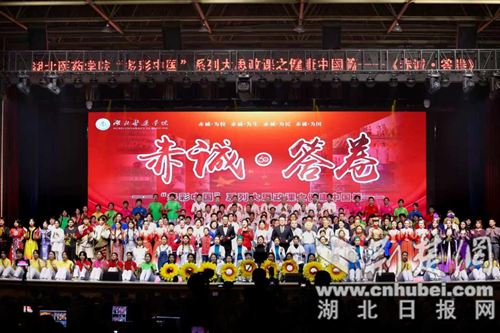 本次“大思政课”围绕“赤诚·为校”“赤诚·为生”“赤诚·为民”“赤诚·为国”四个篇章渐次展开。话剧《启程+西迁郧阳》以沉浸式叙事,引领观众回溯那段激情岁月,感受以项仕孝教授为首的54名教职工垦荒建校的赤子之心。《时光的答卷》中,三位主讲人深情讲述了王家宁教授的科研坚守、陈怡敏老师的育人深情以及解剖学团队的无私奉献。情景剧《守护》则再现了郭文萍、魏殿利、刘哲等医护人员无畏生死、请战抗疫一线的壮举,展现了十二万湖医药人将“人民至上、生命至上”使命担当贯彻终生的赤诚情怀。朗诵《燃灯者》中,8名校友及附属医院代表追忆先辈们以一生为炬,于黑暗中燃亮前路、在岁月里坚守初心的崇高境界。