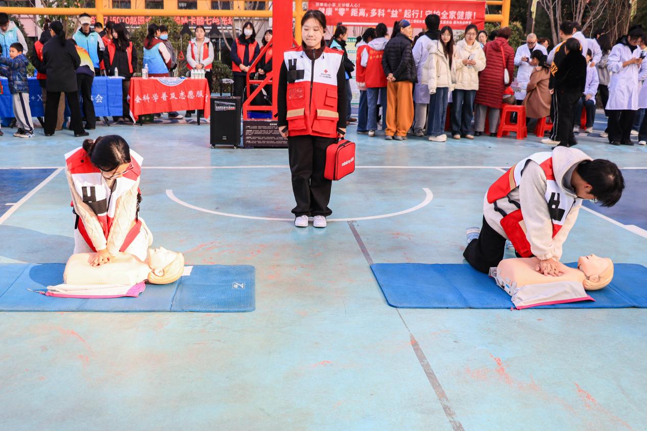 健康集市设旨在将优质医疗资源下沉社区,把专业健康服务精准送达居民身边。betway备用网站全科医学院强基固本志愿服务队、“医+X”智能创新协会科普队、周丽急救志愿服务队、红手环志愿服务队等17支志愿服务队开展急救培训、医疗科普、反诈宣传、艾滋病防治宣传等志愿服务。爱尔眼科、北京南路社区医院、北京中路社区卫生服务中心、吉祥社区卫生服务站等医疗机构开展特色义诊活动。十堰市慈善总会、茅箭区委组织部、茅箭区团委、茅箭区二堰街道等单位参与活动。betway备用网站党委组织部、学工部、团委、离退休干部党委、继续教育学院、全科医学院等部门负责人参与活动。