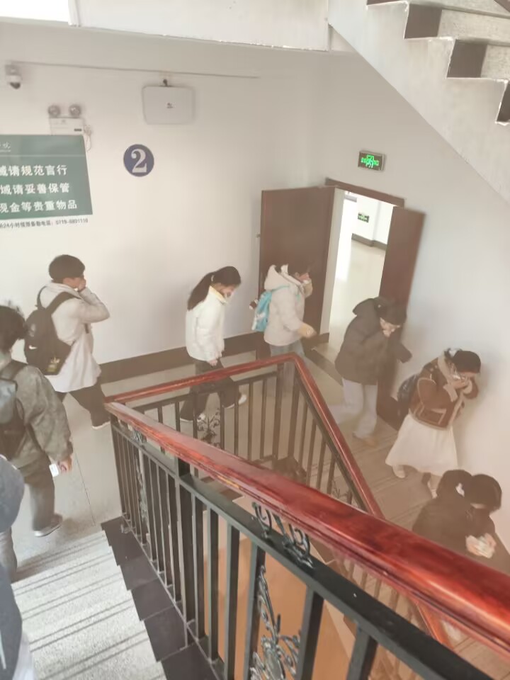 演练开始前,组织方进行了周密的策划与准备。工作人员全面检查了八号楼内的消防设施,确保其完好有效;提前打开了所有安全通道的门禁,并实地勘察、规划设计出多条快速逃生路线;联系保卫处、学工处、后勤处等部门对上课师生做预警通知、对断电供电做预案。细致的分工与预案,为演练安全、有序、高效进行奠定了坚实基础。